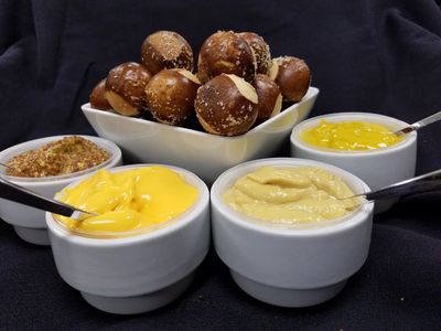 SOFT PRETZEL BASKETS WITH ASSORTED MUSTARDS