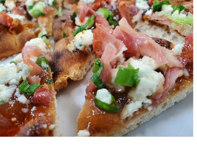 Garlic, Rosemary, Fig Jam, Crumbled Gorgonzola, Prosciutto, Scallions
